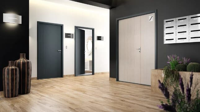 Une porte de sécurité possède une couverture en acier, une couche d'isolation phonique et thermique avec renforts horizontaux et verticaux. Ainsi que 2 panneaux décoratifs à l'intérieur et à l'extérieur de la porte, pour correspondre au design souhaité. Avec bien sûr une serrure à 5 points de fermeture.