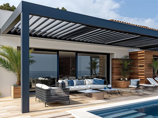 Avec Menuiz protégez-vous du soleil l'été et de la pluie ou du vent l'hiver avec nos pergolas bioclimatiques