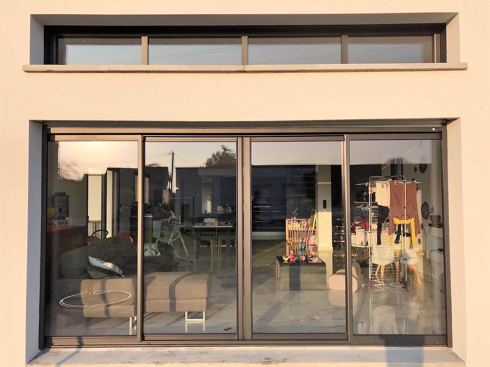 Magnifique rénovation sur mesure, proposée par Menuiz à Nîmes. Création d’une ouverture dans une villa contemporaine avec châssis coulissants à galandage 4 vantaux en aluminium.