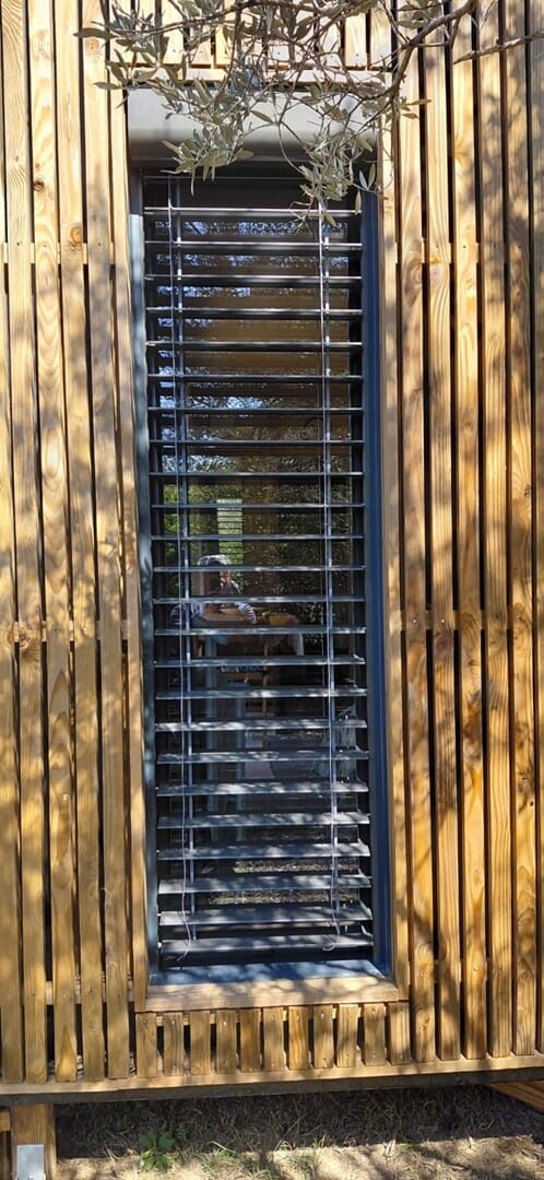 La solution retenue par Menuiz a consisté en l’installation de brise-soleil orientables, permettant un ajustement précis de l’ensoleillement grâce à l’inclinaison des lames. Ce système offre une régulation efficace de la lumière tout en limitant les surchauffes, particulièrement adaptées aux conditions climatiques locales. Les équipements ont été dimensionnés en fonction des ouvertures existantes afin d’assurer une intégration cohérente. La pose a nécessité une mise en œuvre rigoureuse, notamment pour garantir l’alignement des lames et la solidité des fixations en façade. Une attention particulière a également été portée aux réglages pour assurer un fonctionnement fluide et durable de l’ensemble. Type d’installation : brise-soleil orientables Fonction : gestion de l’ensoleillement et protection thermique Pose : en façade Type de bâtiment : maison individuelle Spécificité : orientation réglable des lames