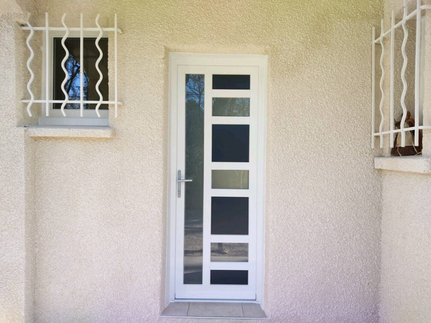 Menuiz fabricant et installateur de menuiseries françaises situé dans la zone Euro 2000 de Caissargues en périphérie de Nimes vous accompagne dans toutes les étapes de la réalisation de votre projet. Un des produits phares de la Gamme de produits sur mesure en composite. Doté des meilleures performances thermiques, c'est aussi un atout pour gagner en clair de vitrage. Chez notre client près de Bagnols sur Cèze et de Nimes, l'équipe MENUIZ a effectué la rénovation d'une porte d'entrée et de porte-fenêtre en composite.
