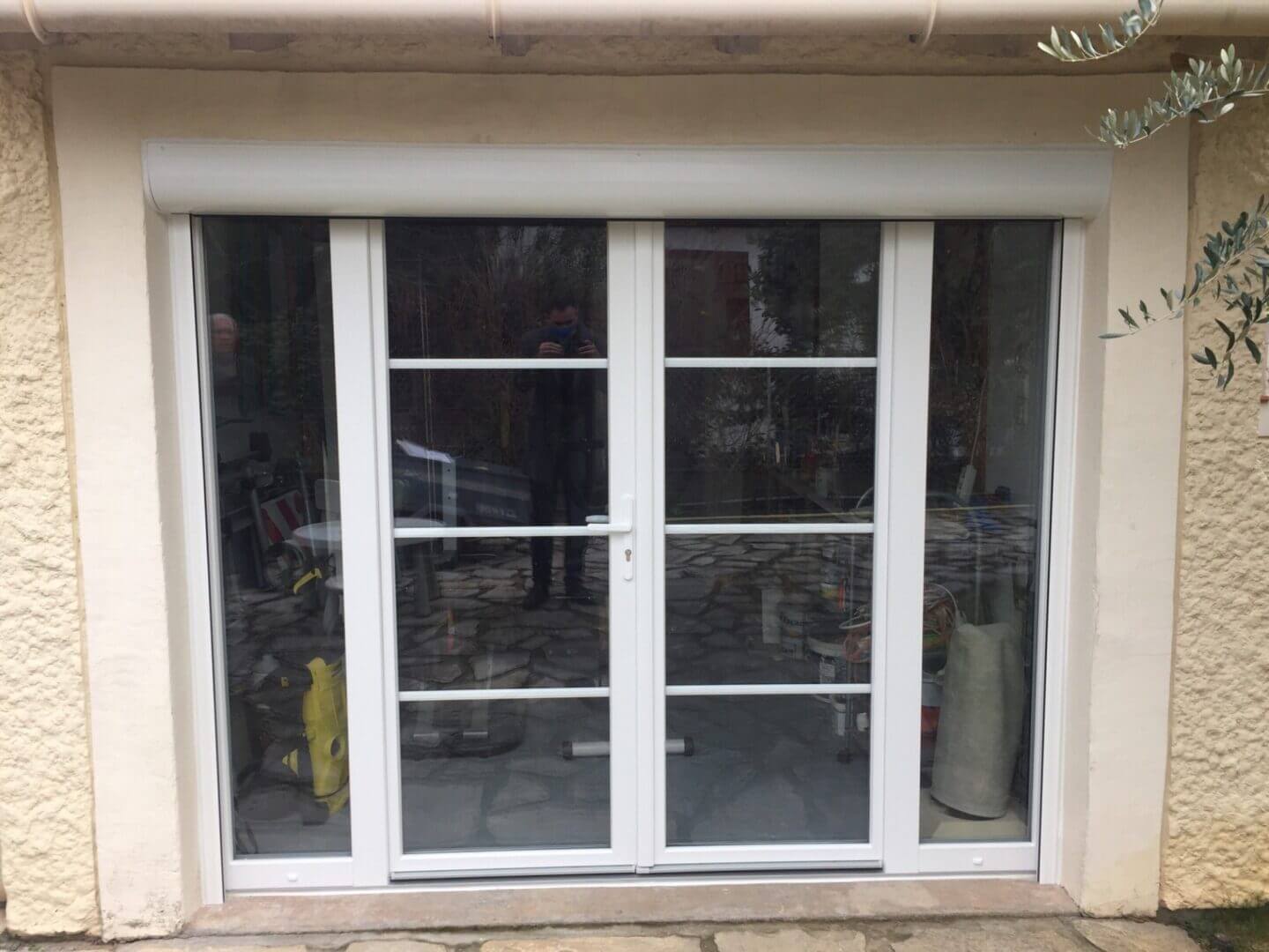 Création d’une baie vitrée en PVC en ensemble composé avec 2 Fixes vitres et des croisillons horizontaux pour un rendu très esthétique et très lumineux.