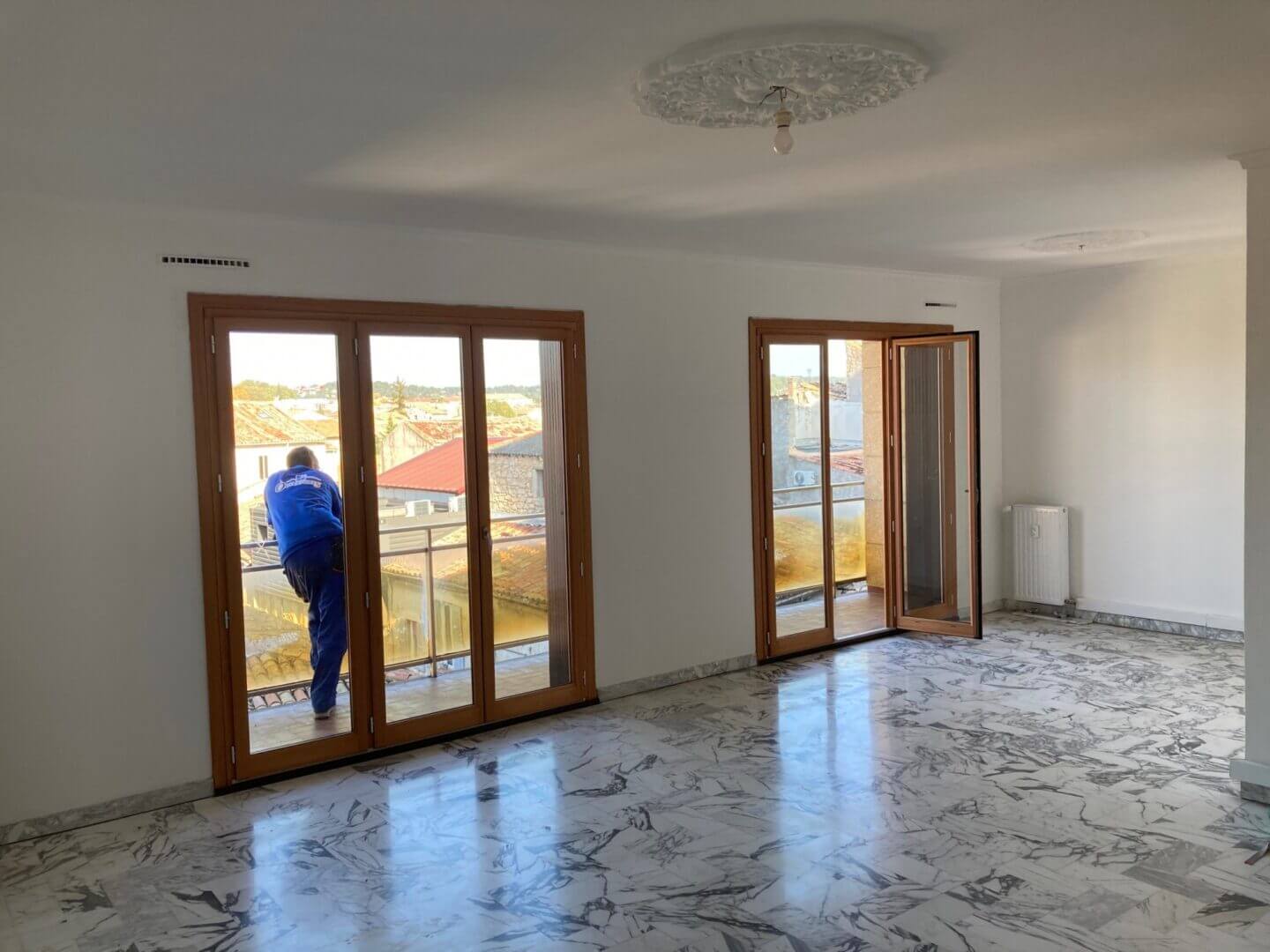 Soumis à des règles d'urbanisme très exigeante, le cœur de Nîmes doit faire l'objet d'une étude rigoureuse en matière de menuiserie. Notre client souhaitait évidemment conservé le cachet de l'appartement.