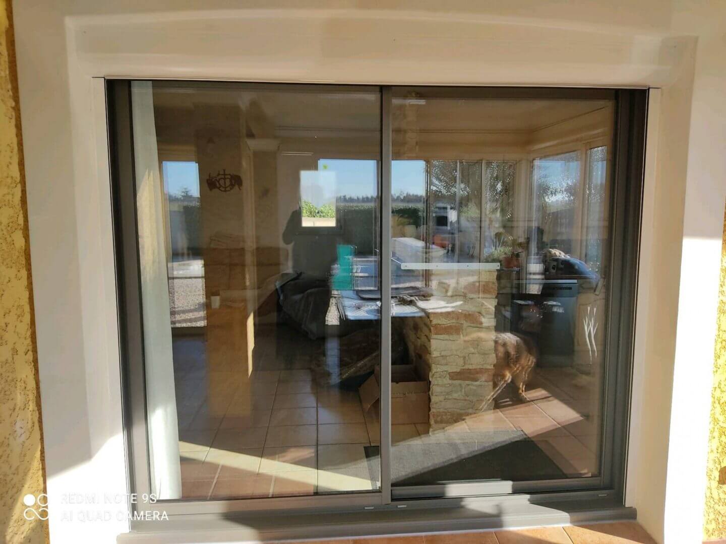 MENUIZ à Nimes vend et pose des baies vitrées sur Nimes et alentours mais se déplace également sur le secteur d'Arles et dans tout le Gard. Voici ce que nos clients habitants de Garons près de Nimes ont choisi : Un coulissant en aluminium haut de gamme deux vantaux posés par notre équipe salariée Menuiz avec un volet roulant posé en rénovation.